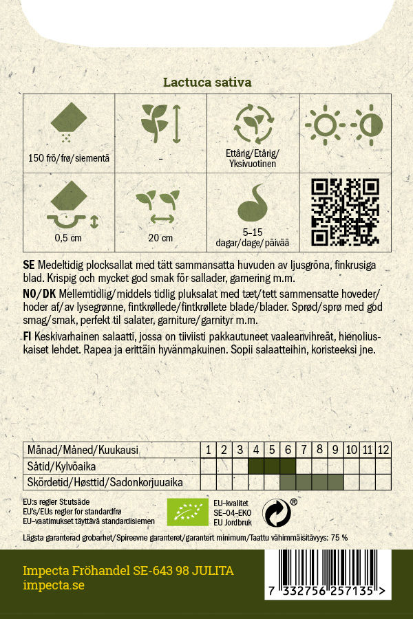 Lactuca sativa 'Hilde II'riittoisuus 6 metrille