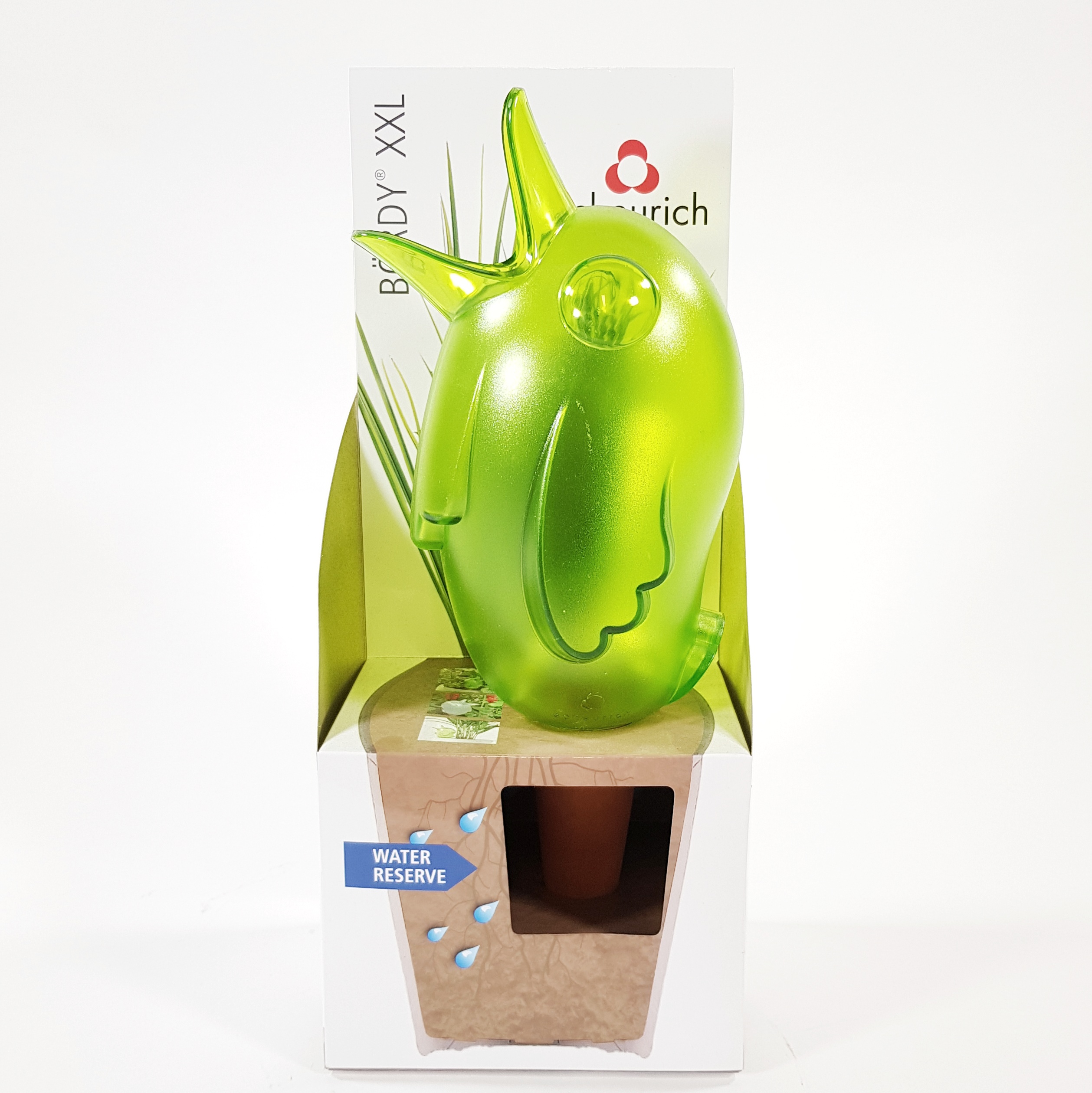 Bördyn keraaminen jalka painetaan kokonaan multaa, ja se luovuttaa kasvualustaan vettä sitä mukaan kun kasvi sitä kuluttaa. Säiliön vesimäärä (1000 ml) riittää kasvista ja lämpötilasta riippuen jopa 15 päivän tarpeisiin, joten XXL-koon Bördy tuo kasteluun mukavaa huolettomuutta.