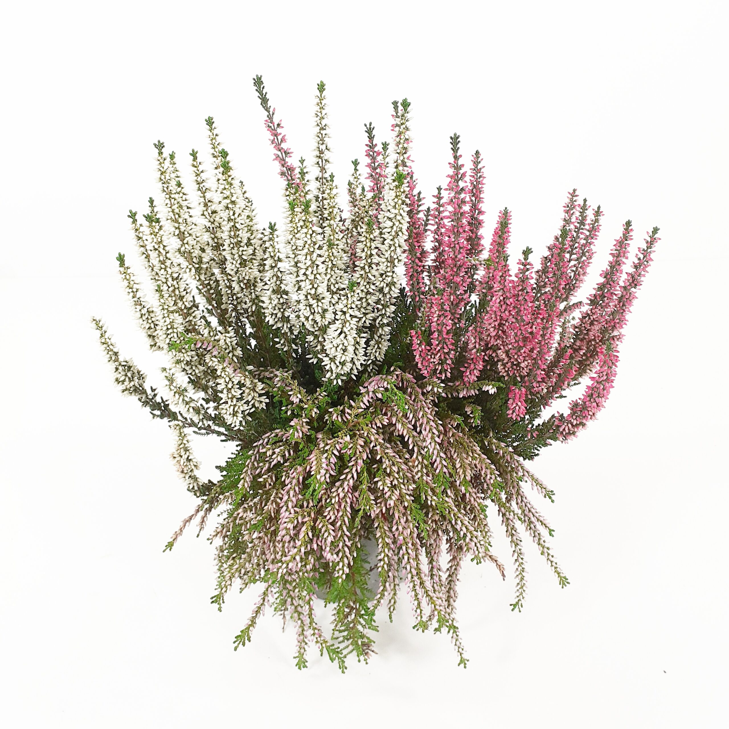 Samassa ruukussa hurmaava kolmen eri lajikkeen yhdistelmä; riippuvaa callunaa, sekä kahta erilaista pystyä callunaa. Sävyt vaihtelevat, ruukun halkaisija 13cm, korkeus ruukun kanssa noin 20-25cm.