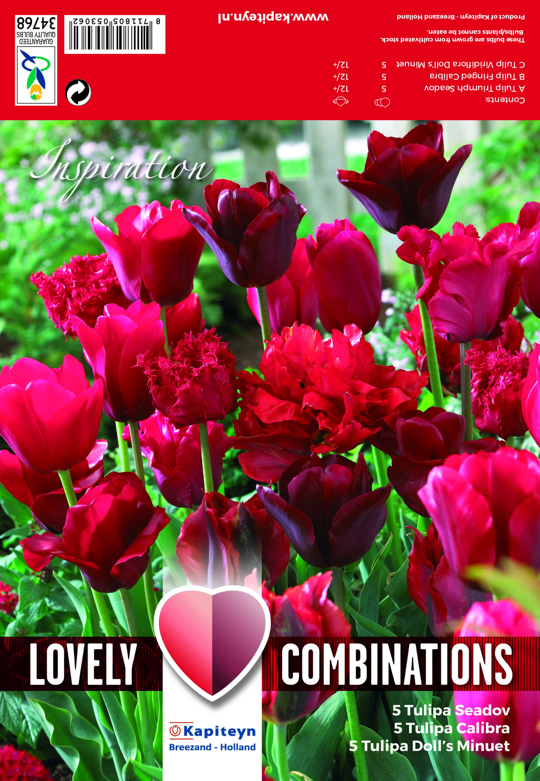 Näyttävä sekoitus punaisia tulppaaneja,jotka kukkivat samanaikaisesti.Sisältää lajikkeet Triumph Seadov,Fringed Calibra,Viridiflora Doll’s Minuet.
