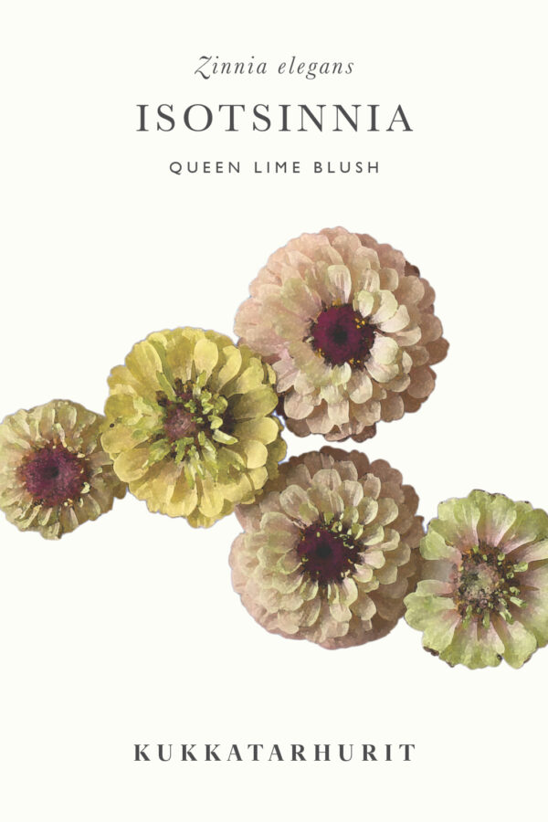 Uutta meillä, Kukkatarhureiden leikkokukkien siemenkokoelma! Tyylikäs limen ja vaaleanpunaisen sävyinen isotsinnialajike, joka sopii mainiosti leikkokukaksi.