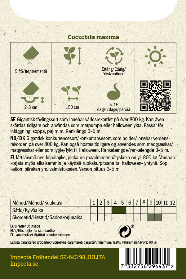 Cucurbita pepo 'Pic n Pic'Siemenmäärä 8.