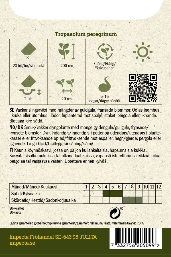 Tropaeolum majusSiemenmäärä 108