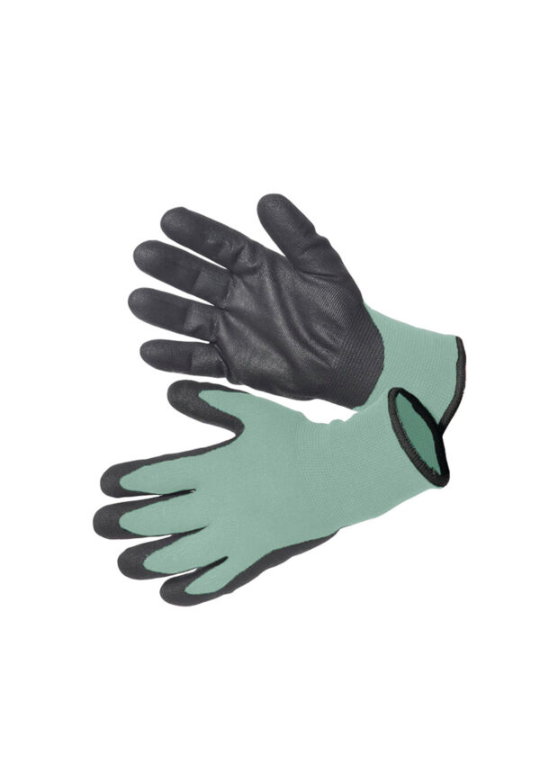 Lämpimästi vuorattu joustava käsine, jolla tarkenee kylmemmässäkin säässä. Pinta polyesterineulosta, vuori akryyliä. Musta nitriilipäällyste kämmenosassa sekä sormissa hylkii vettä sekä parantaa otteen pitävyyttä.