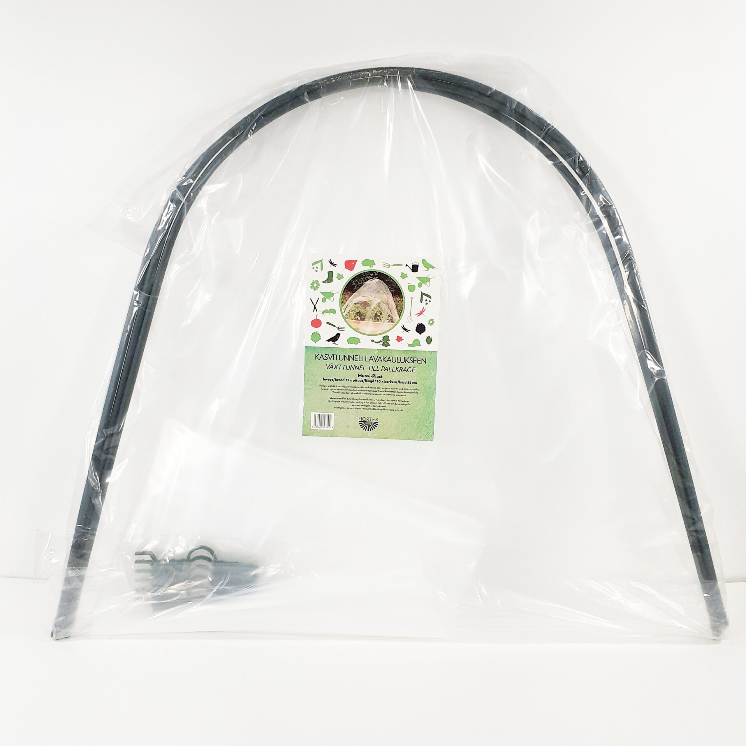 Tämä kasvitunnelin avulla teet lavakauluksestasi pienen kasvihuoneen. Pakkaus sisältää 3 muovipäällysteistä metallista tukikaarta, kasvihuonemuovin (0,09mm) sekä 6 kiinnityssolkea. Tukikaaret ovat irrallaan, joten niiden paikkaa voi säädellä. Nopeuttaa satoa ja optimoi kasvatusolosuhteita viileällä säällä.