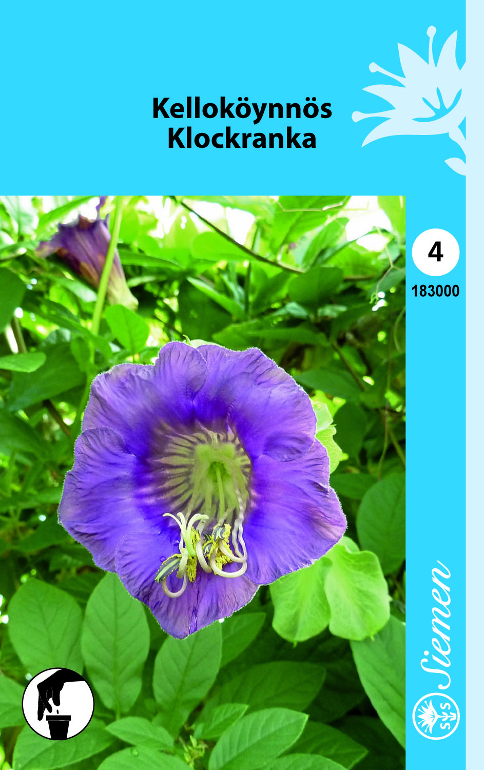 Pidetty ja nopeakasvuinen köynnöskasvi. Sen kellomaiset kukat ovat tumman sinivioletin väriset ja erittäin koristeelliset. Erinomainen kasvi parvekkeelle, terassille ja ulos aurinkoiseen paikkaan. Tarvitsee tuen. Voidaan kasvattaa ruukkukasvina kaarevassa säleikkössä aurinkoisella ikkunalla.