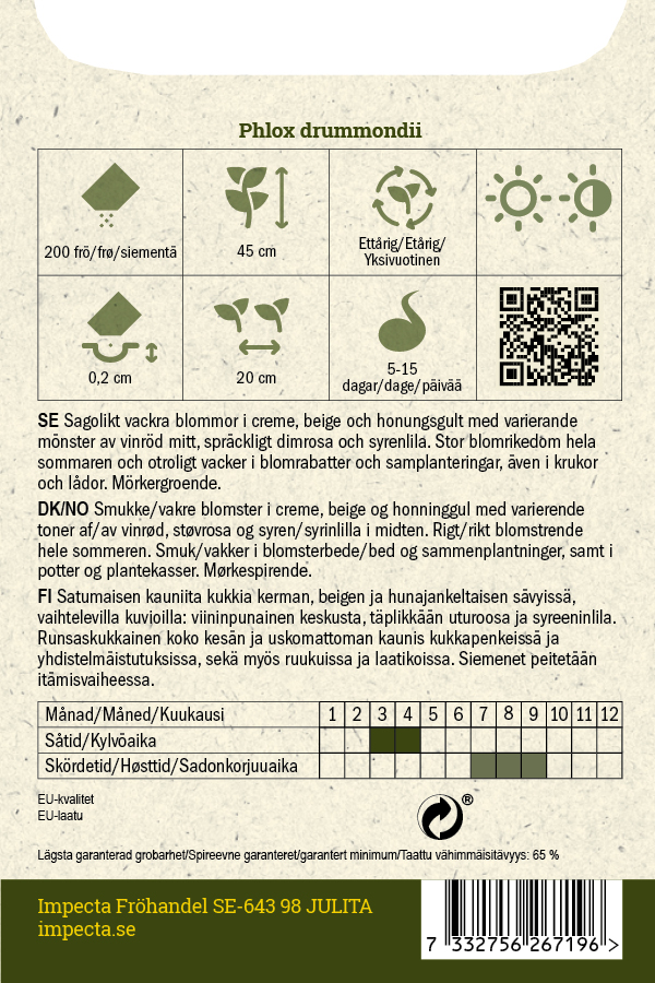Satumaisen kauniita kukkia kerman, beigen ja hunajankeltaisen sävyissä, vaihtelevilla kuvioilla: viininpunainen keskusta, täplikkään uturoosa ja syreeninlila. Runsaskukkainen koko kesän ja uskomattoman kaunis kukkapenkeissä ja yhdistelmäistutuksissa, sekä myös ruukuissa ja laatikoissa. Siemenet peitetään itämisvaiheessa.