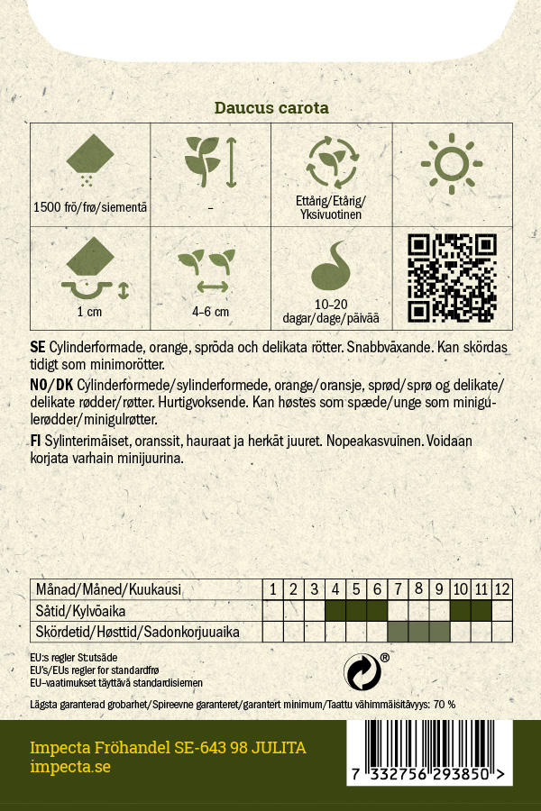Daucus carota'Nantaise 2'Riittoisuus 5-6 metriä.