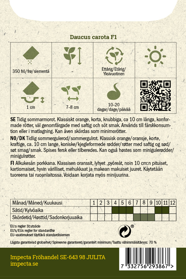 Daucus carota'Nantaise 2'Riittoisuus 5-6 metriä.