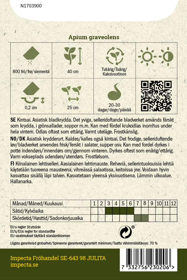 Kiinalainen lehtiselleri. Aasialainen lehtimauste. Reheviä, sellerintuoksuisia lehtiä käytetään tuoreina mausteena, vihreässä salaatissa, keitoissa jne. Voidaan hyvin kasvattaa sisätiloissa läpi talven. Yleensä kasvatetaan yksivuotisena.