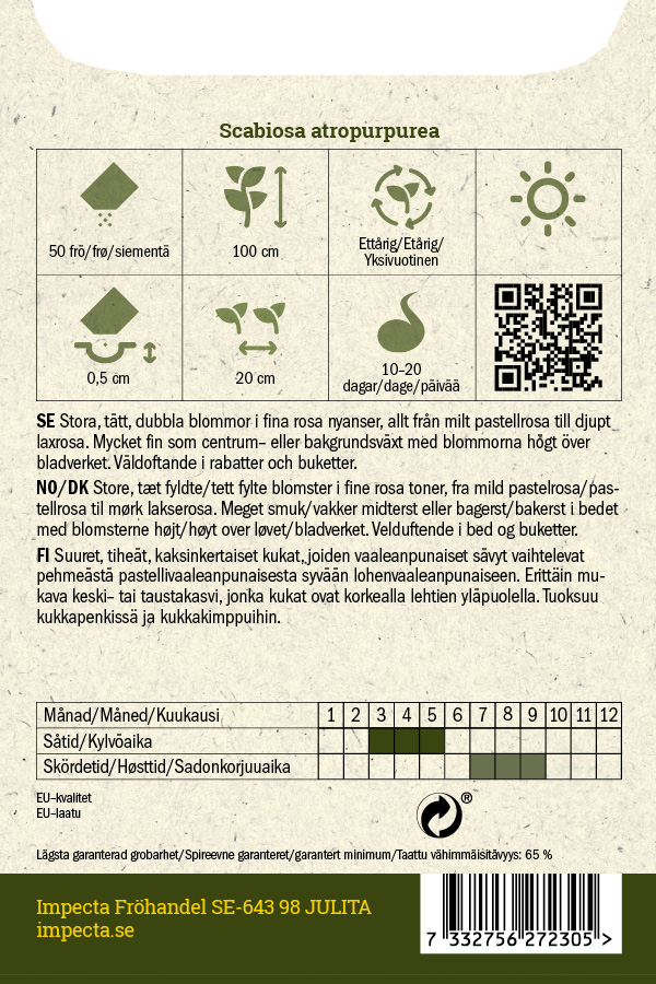 Suuret, tiheät ja kerrannaiset kukat, joiden vaaleanpunaiset sävyt vaihtelevat hennosta pastelliroosasta syvään lohenpunaisen sävyyn. Sopii hyvin keskus- tai taustakasviksi. Kukat kohoavat korkealle lehtien päälle. Hyvältä tuoksuva kukka kukkapenkkeihin ja -kimppuihin.
