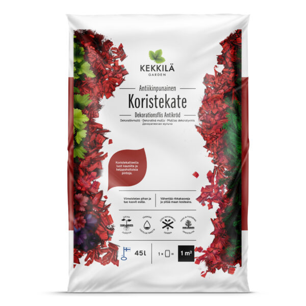Kekkilän koristekatteet ovat luonnonvärein värjättyä kotimaista puuhaketta. Kauniit, luonnolliset sävyt sopivat hyvin yhdisteltäväksi erilaisten kasvien, puu- ja kivipintojen sekä luonnonmateriaalien kanssa.