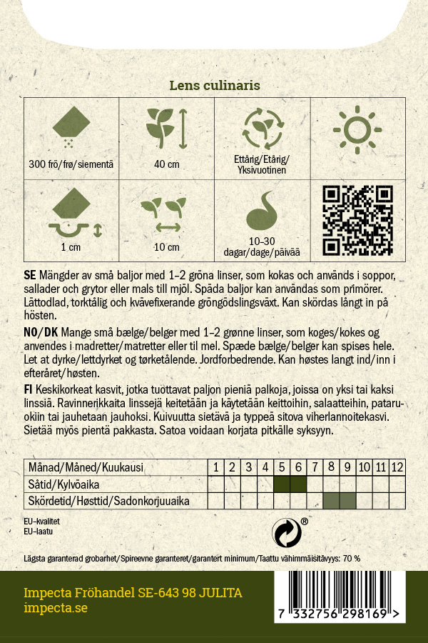 Keskikorkeat kasvit, jotka tuottavat paljon pieniä palkoja, joissa on yksi tai kaksi linssiä. Proteiini- ja ravinnerikkaita linssejä keitetään ja käytetään keittoihin, salaatteihin ja pataruokiin tai jauhetaan jauhoksi. Nuoria palkoja voidaan käyttää myös varhaisvihanneksina. Helppo kasvattaa, kuivuutta sietävä ja typpeä sitova viherlannoitekasvi. Sietää jopa pientä pakkasta, ja satoa voidaan korjata pitkälle syksyyn.