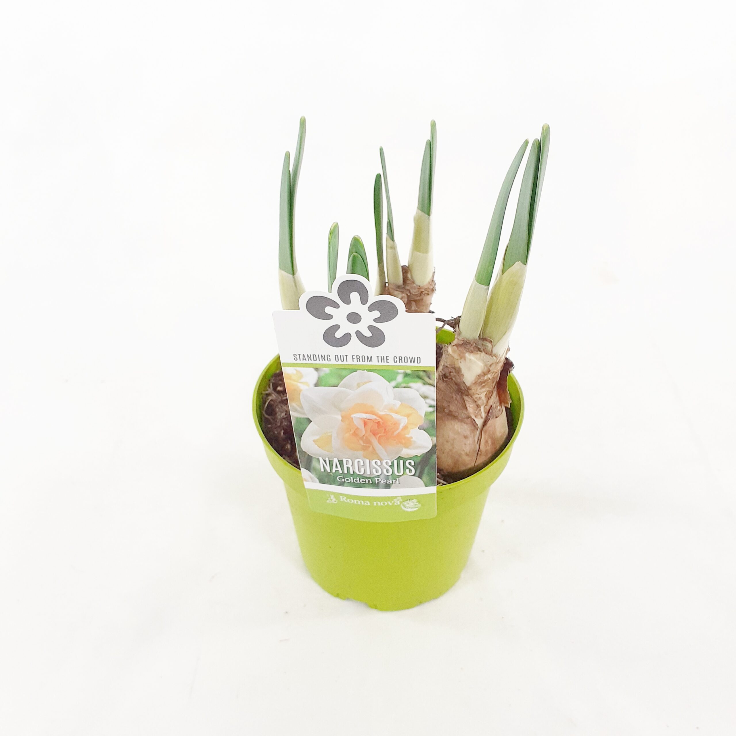 Kaunis valkoinen kerrattukukkainen narsisilajike, jonka keskustassa häivähdys persikan sävyä.