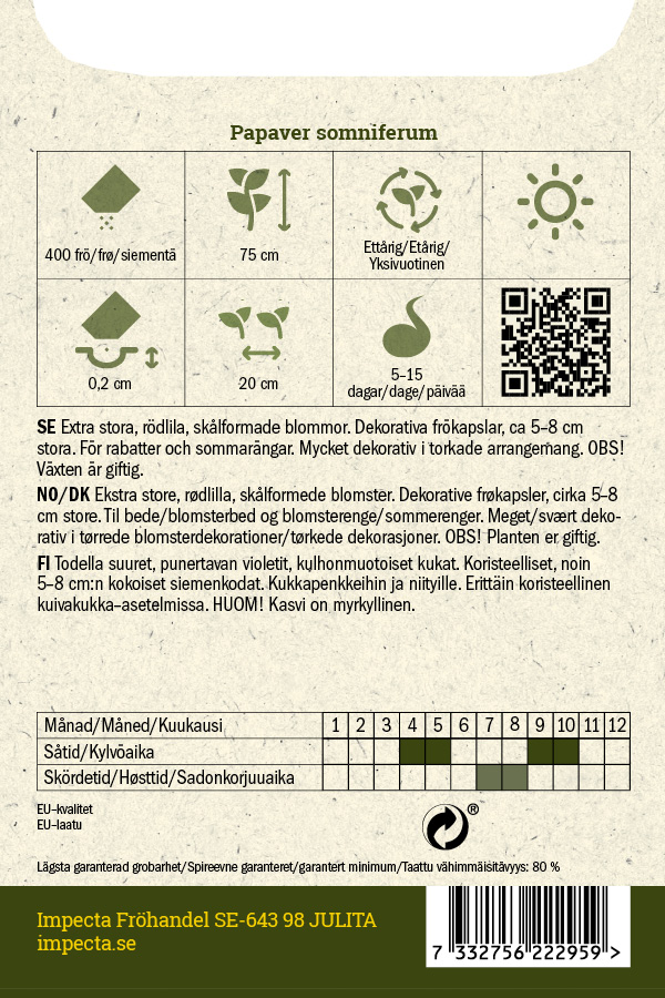 Papaver somniferumsiemeniä n. 1600