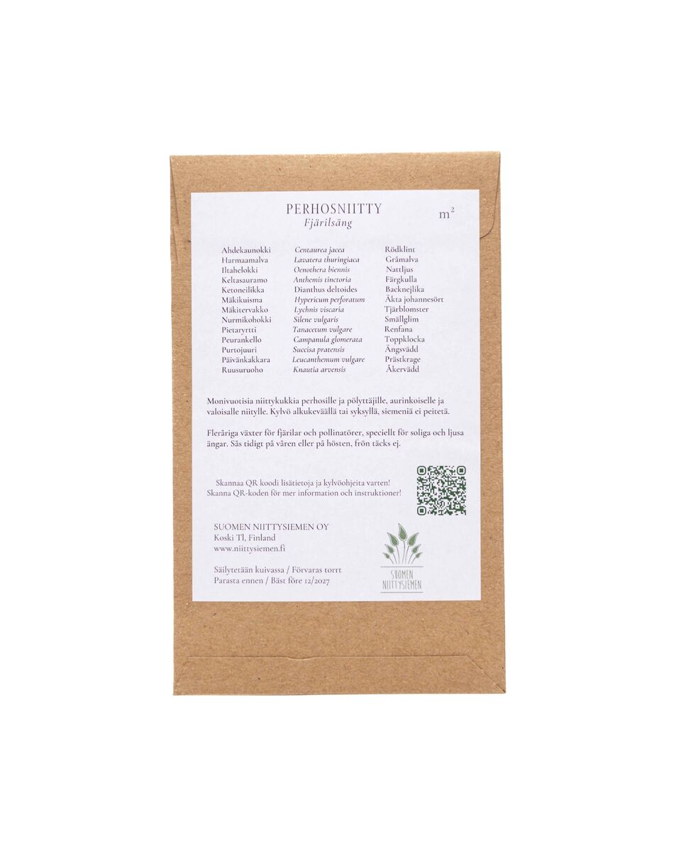 Monivuotinen niittykukkasekoitus, johon on valittu perhosille sopivia mesi- ja ravintokasveja. Sopii tuoreille ja aurinkoisille niityille ja maisemapelloille, myös saviseen maahan. Sisältää lajikkeet ahdekaunokki, aitohunajakukka, keltamaite, ketoneilikka, keltasauramo, mäkimeirami, nurmikohokki, pietaryrtti, puna-ailakki, purtojuuri, päivänkakkara, ruiskaunokki ja ruusuruoho.