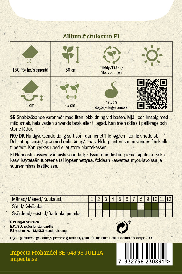 Allium fistulosum 'White Lisbon'Siemenmäärä 450.