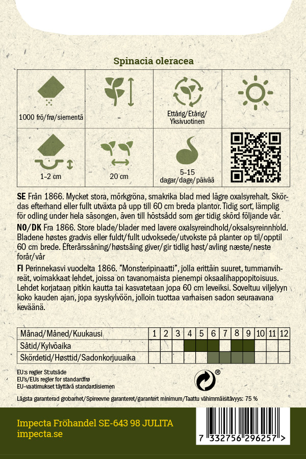 Perinnekasvi vuodelta 1866. ”Monsteripinaatti”, jolla erittäin suuret, tummanvihreät, voimakkaat lehdet, joissa on tavanomaista pienempi oksaalihappopitoisuus. Lehdet korjataan pitkin kautta tai kasvatetaan jopa 60 cm leveiksi. Soveltuu viljelyyn koko kauden ajan, jopa syyskylvöön, jolloin tuottaa varhaisen sadon seuraavana keväänä.