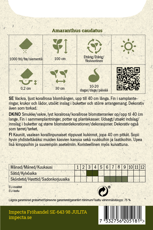 Kauniit, vaalean korallinpunaiset riippuvat kukinnot, jopa 40 cm pitkät. Sopii hyvin yhdisteltäväksi muiden kasvien kanssa sekä ruukkuihin ja laatikoihin. Upea lisä kimppuihin ja suurempiin asetelmiin. Koristeellinen myös kuivattuna.