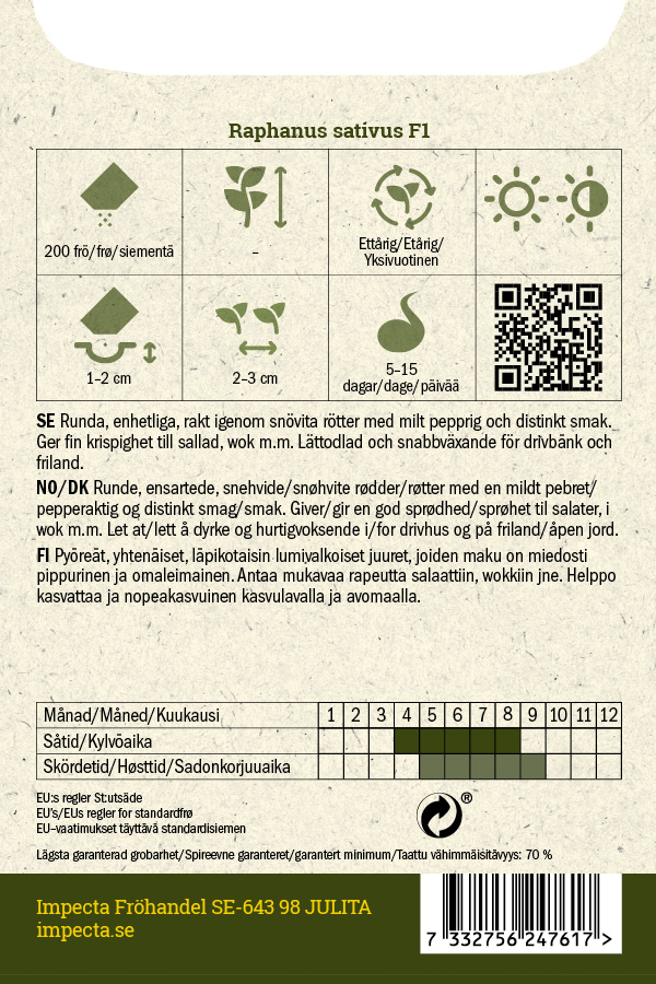Raphanus sativus var.radicula 'Saxa 2'siemeniä n. 130