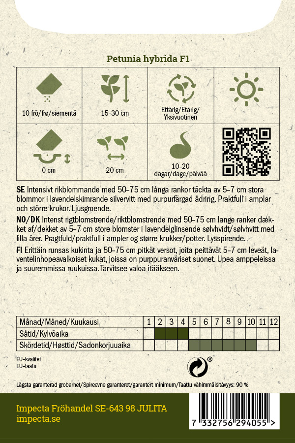 Petunia hybrida F1 'Easy Wave White'10 siementä