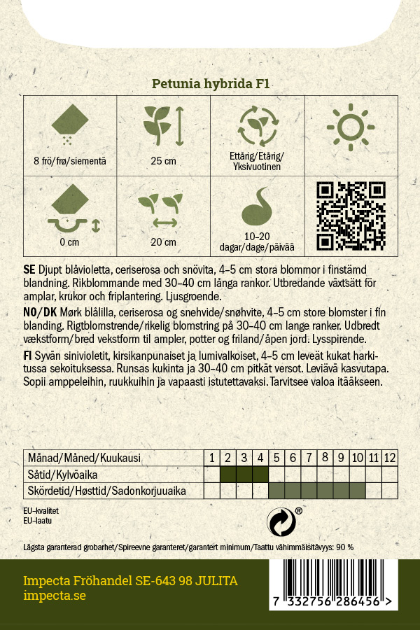 Syvän sinivioletit, kirsikanpunaiset ja lumivalkoiset, 4-5 cm leveät kukat harkitussa sekoituksessa. Runsas kukinta ja 30-40 cm pitkät versot. Leviävä kasvutapa. Sopii ripustettaviin koreihin, ruukkuihin ja vapaasti istutettavaksi.