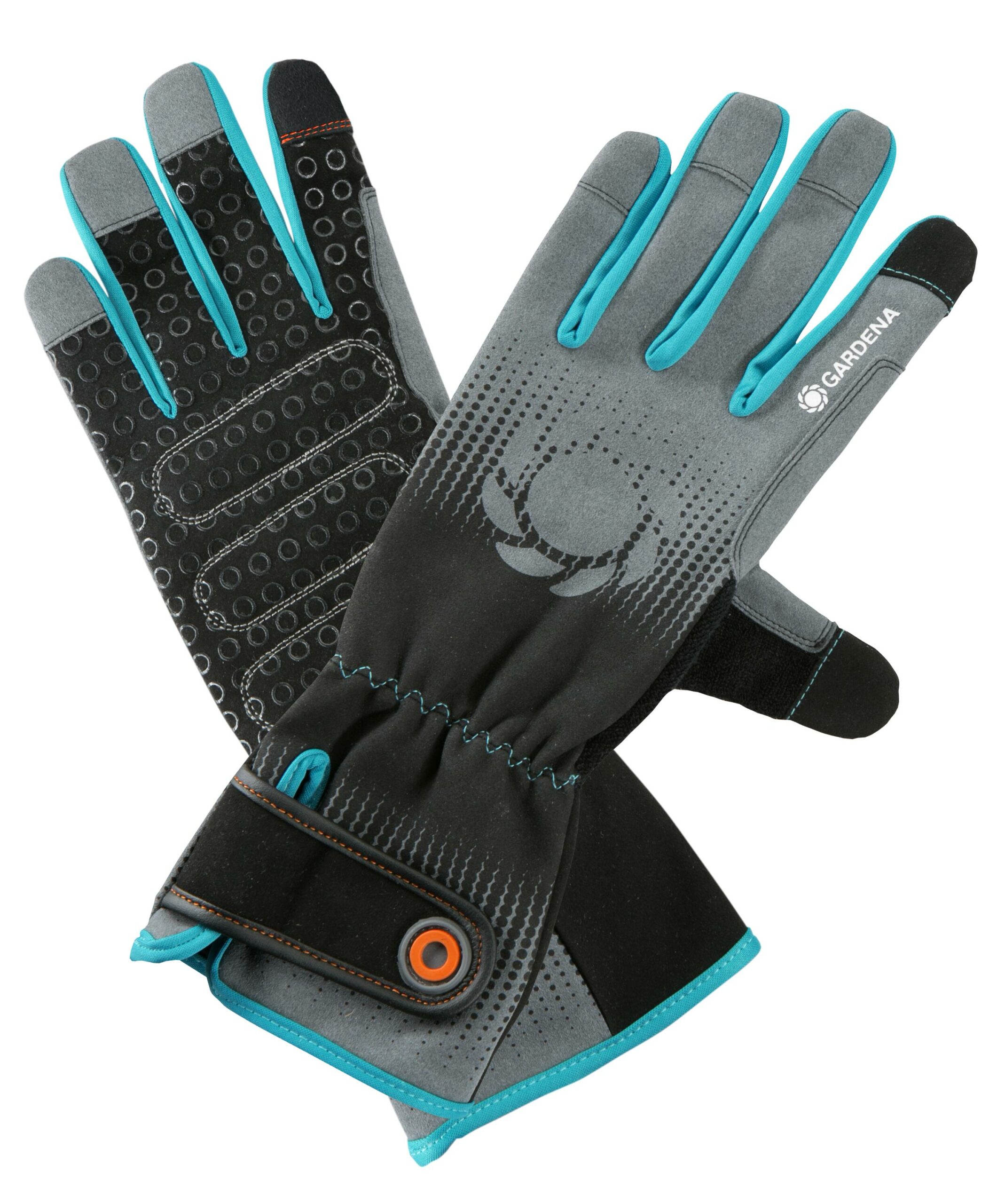 GARDENA-ruusukäsineet koko L auttavat suojaamaan käsiäsi työskentelyn aikana. Hieman suurempaan käteen tarkoitetuissa kestävissä puutarhakäsineissä on pitkä ranneosa ja säädettävä ranneke. Ne suojaavat rannetta ja kyynärvarren alaosaa. Lisäksi erityisen herkät kohdat, kuten sormet ja kämmenosa, on vahvistettu aramidilla. Materiaali on pistonkestävää, joten piikikkäät kasvit, kuten ruusut ja orapihlaja, eivät enää ole ongelma. Käsineet ovat erityisen käytännölliset, sillä peukalon ja etusormen kohdalla olevan Mobile Touch -ominaisuuden ansiosta voit käyttää älypuhelimen kosketusnäyttöä helposti. Käsineitä ei toisin sanoen tarvitse riisua, sillä ne ovat yhteensopivat kosketusnäytön kanssa. Ruusukäsineet paitsi suojaavat naarmuilta, niille on myös myönnetty Öko-Tex® 100 -sertifiointi, mikä tarkoittaa, ettei niissä ole käytetty haitallisia aineita. Materiaalit: 38 % polyester, 32 % nailon, 16 % polyuretaani, 8 % aramidi, 4 % puuvilla ja 2 % elastaani.