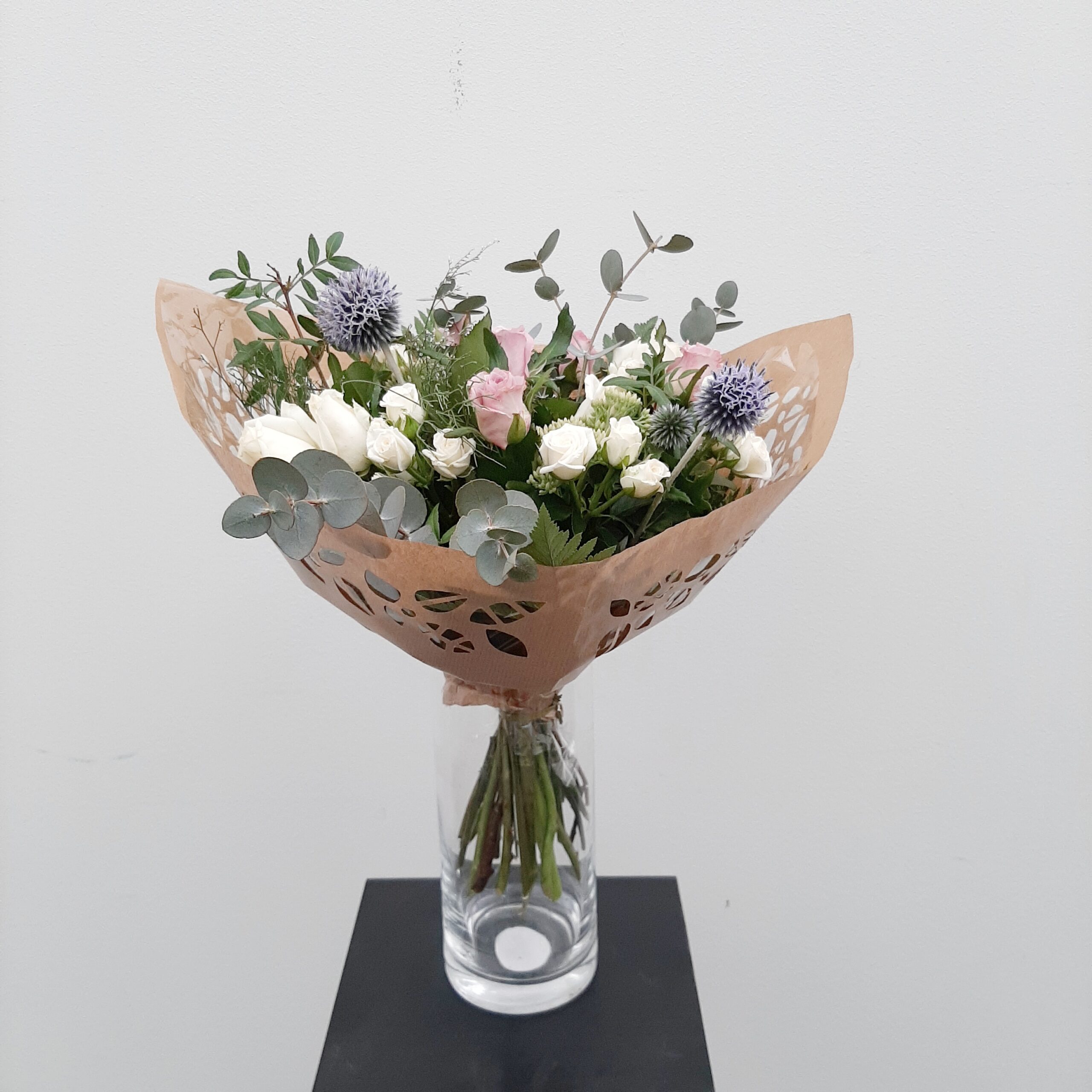 Täytä maljakko vedellä ja lisää siihen kukkien mukana tuleva leikkokukkavirkiste. Leikkaa kimpun varsiin uusi imupinta terävällä veitsellä ja laita kimppu maljakkoon. Varmista, että vettä on vähintään kimpun sidontakohtaan asti, sillä jotkin leikkokukkien varret voivat olla lyhyemmät. Lisää vettä tarpeen mukaan parin päivän välein. Älä sijoita kimppua suoraan auringonpaisteeseen. Mikäli siirrät kimpun yöksi viileään, se lisää kukkien kestoa.