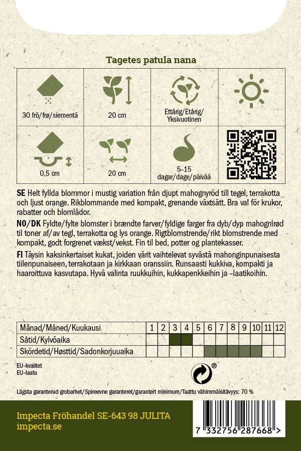 Tagetes patula 'Strawberry Blond'Siemenmäärä 30