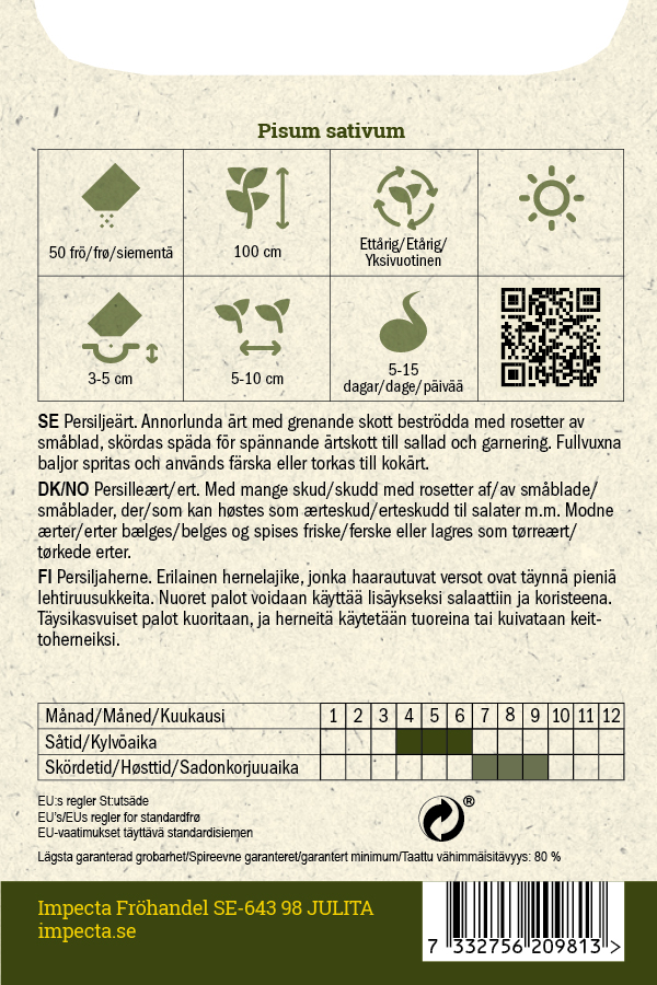 Persiljaherne. Erilainen hernelajike, jonka haarautuvat versot ovat täynnä pieniä lehtiruusukkeita. Nuoret palot voidaan käyttää lisäykseksi salaattiin ja koristeena. Täysikasvuiset palot kuoritaan, ja herneitä käytetään tuoreina tai kuivataan keittoherneiksi.