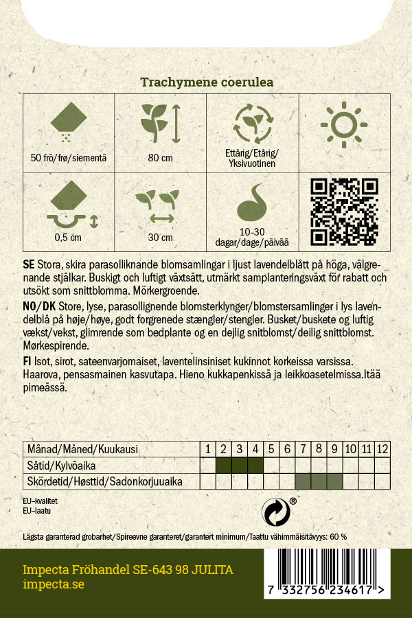 Yksivuotinen. Kylvöaika helmi-huhtikuu. Kylvösyvyys 0,5 cm. Itää pimeässä