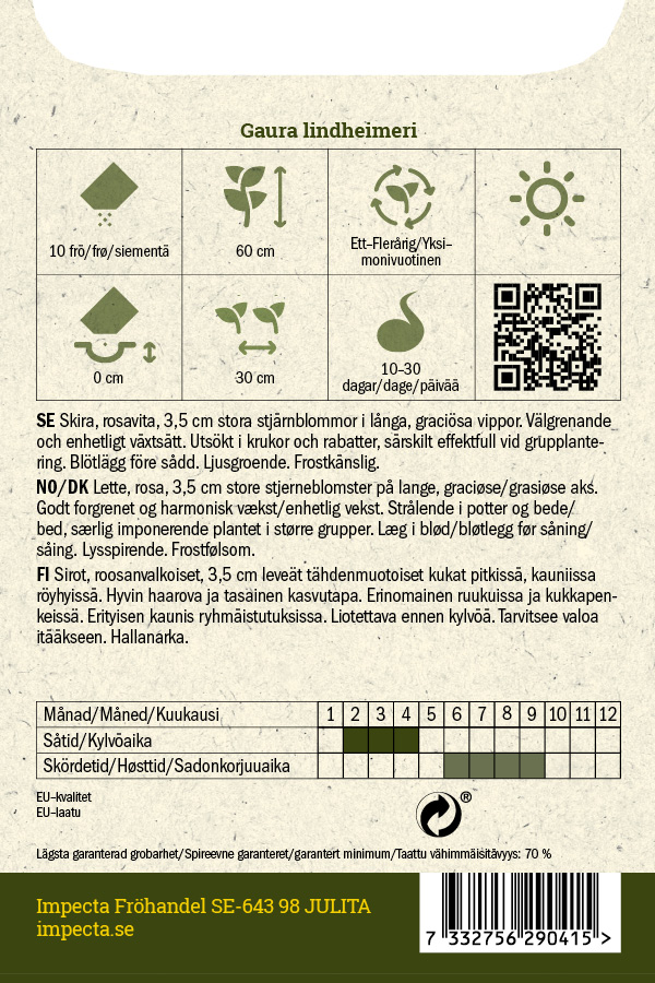 Liota siemeniä vuorokausi ennen kylvöä. Esiviljely sisätiloissa kylvömullassa. Valossa itävä. Kostuta multa ennen kylvöä ja paina siemenet kevyesti pintaan. Läpinäkyvä peite, jossa on ilma-aukot, tai vaihtoehtoisesti tuuleta säännöllisesti. Laita itämisen jälkeen valoisaan ja viileään paikkaan. Istuta ulos karaisun jälkeen, kun hallanvaara on ohi.