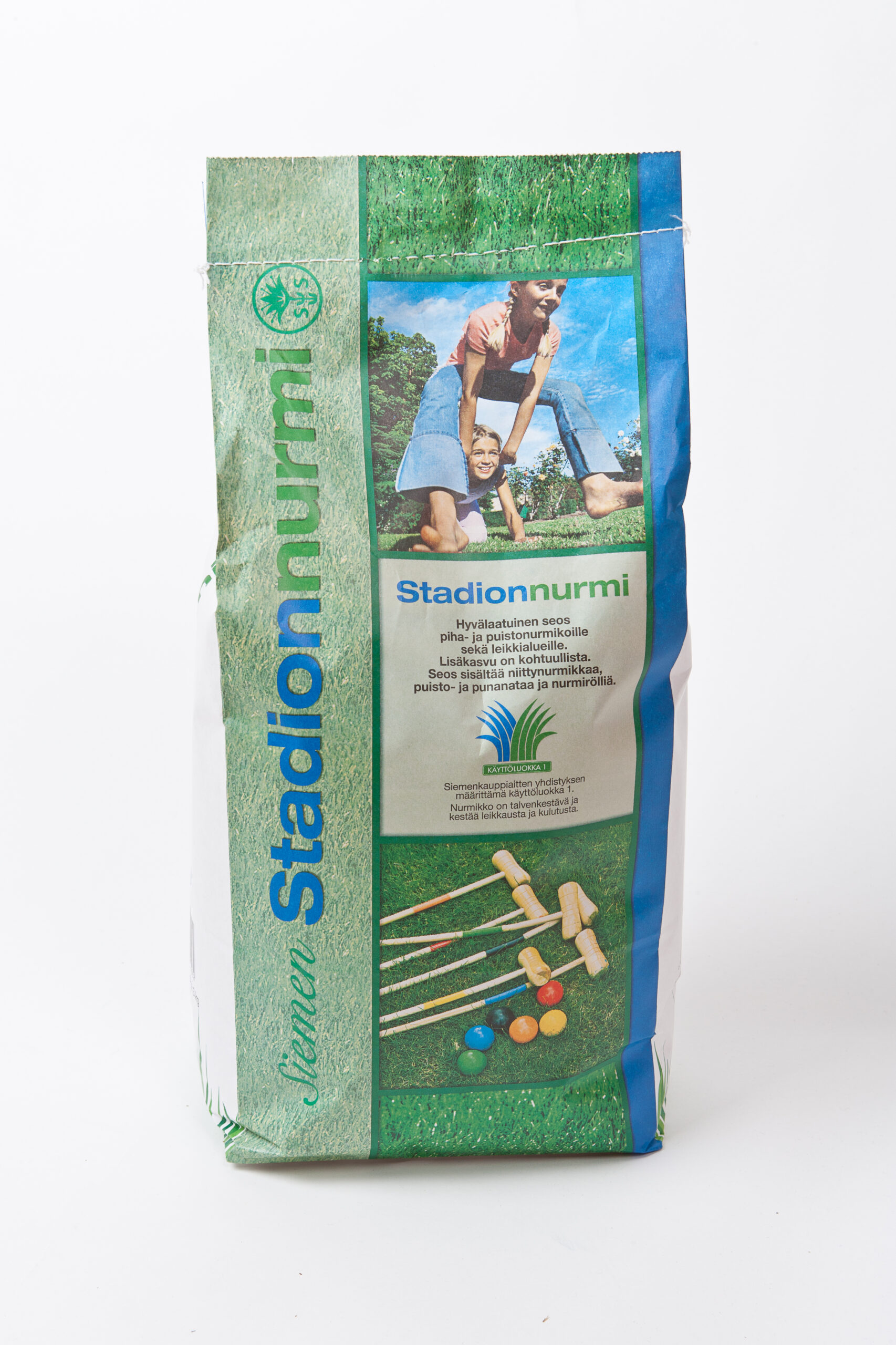 Käyttöluokka 1.Sisältää niittynurmikkaa 35%,puistonataa 35%,punanataa 27% ja nurmirölliä 3%.Hyvälaatuinen seos piha-ja puistonurmikoille sekä leikkikentille.Kestää kulutusta,talvehtii hyvin.