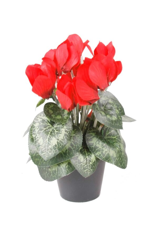 Silkkikukka Syklaami, 25 cm, tummanpunainen, ruukussa.
