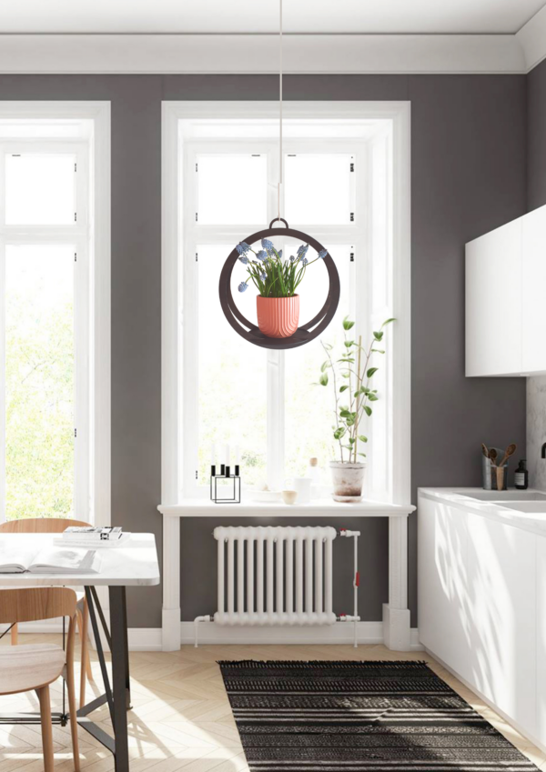 Tämän uniikin amppelin voit laittaa parvekkeelle tai kuistille. Amppeli on pintakäsitelty siten, että se kestää kosteutta. Amppelin halkaisija on 52cm ja alustalle sopii 25cm ruukku. Kantavuus on 15kg. Amppeli on valmistettu laadukkaasta suomalaisesta koivuvanerista. Ei sisällä ripustuskoukkuja.