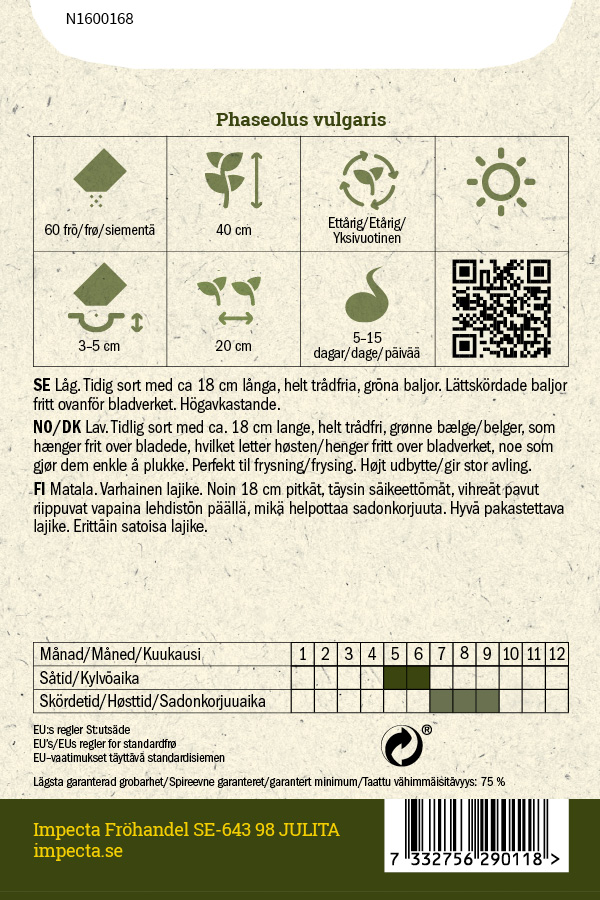 Phaseolus vulgaris 'Maxidor'siemenmäärä 180