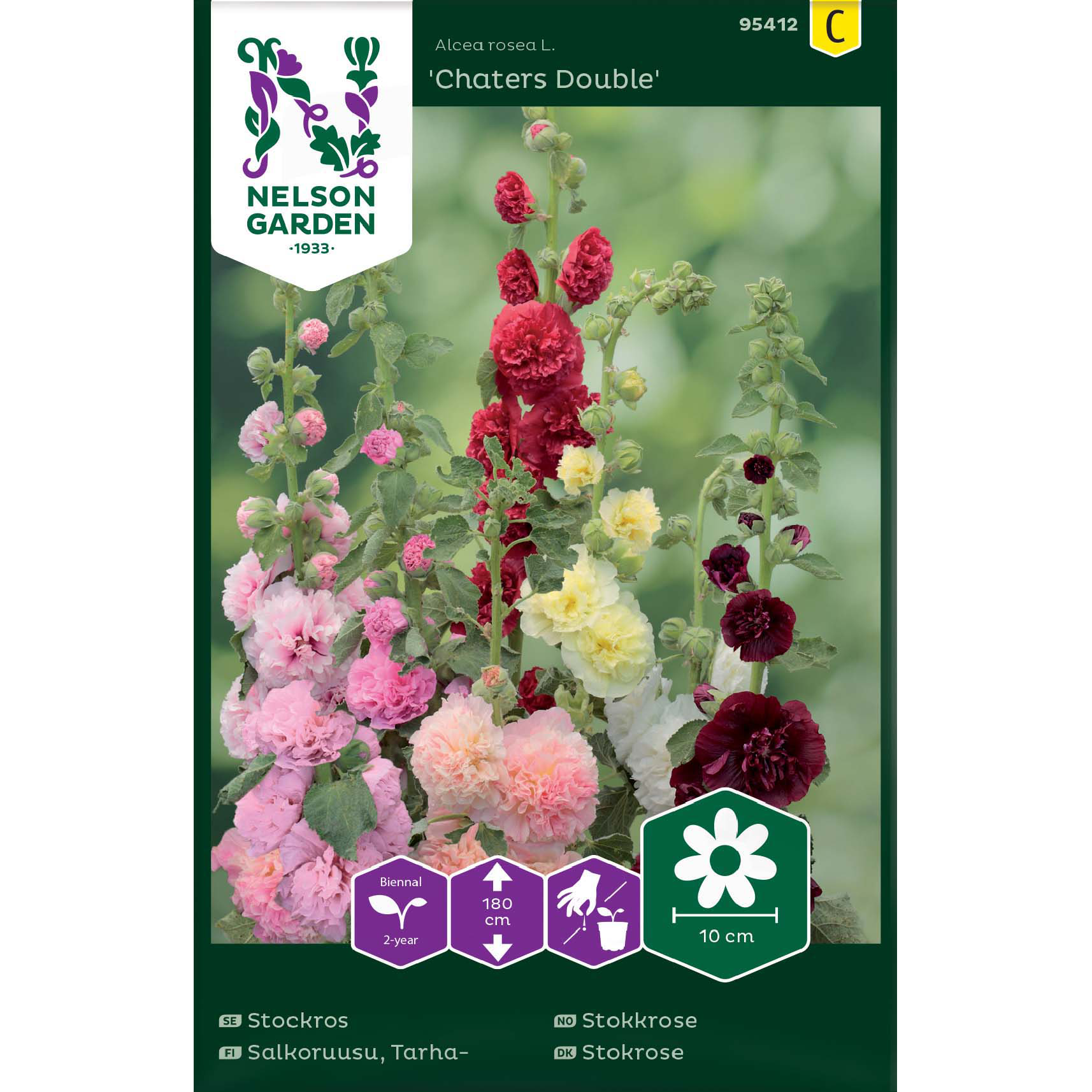 Kaunis kaksivuotinen, näyttävä perenna, jonka loistavat kukat ovat pitkällä matkalla varressa. Kukat ovat täyteläiset, pionimaiset ja läpimitaltaan jopa 10 cm, ja väreinä vaihtelevat valkoinen, keltainen, roosa ja tummanpunainen. Kukkii vuoden kuluttua kylvöstä, aikaisin kylvettynä voi kukkia jopa samana vuotena.