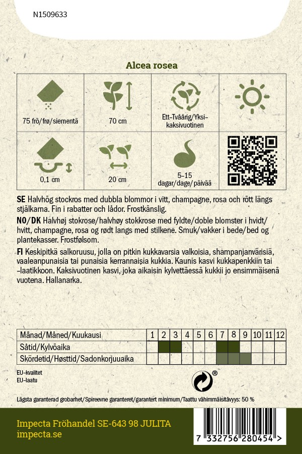Keskipitkä salkoruusu, jolla on pitkin kukkavarsia valkoisia, samppanjanvärisiä, vaaleanpunaisia tai punaisia kerrannaisia kukkia. Kaunis kasvi kukkapenkkiin tai -laatikkoon. Kaksivuotinen kasvi, joka aikaisin kylvettäessä kukkii jo ensimmäisenä vuotena.