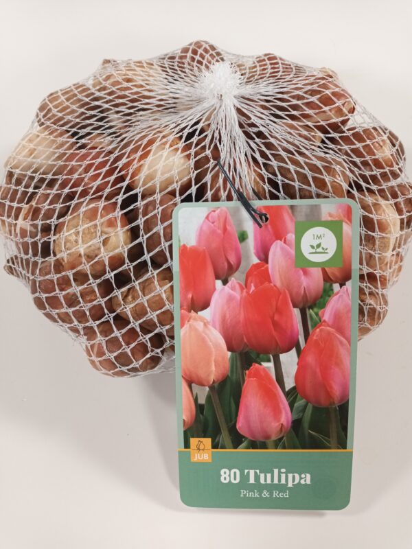 100 kpl pussi punaisia ja vaaleanpunaisia Triumh-tulppaanin sipuleita.