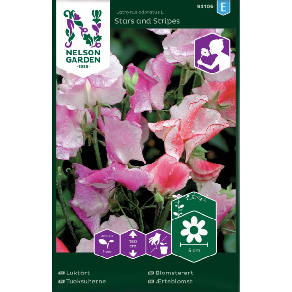 Ihastuttava tuoksuherneseos, joka kukkii purppuran, roosanpunaisen ja lilan sävyisin, hieman raidallisin kukin. Sopii sekä ruukkuun että kukkapenkkiin, tarvitsee tuennan.