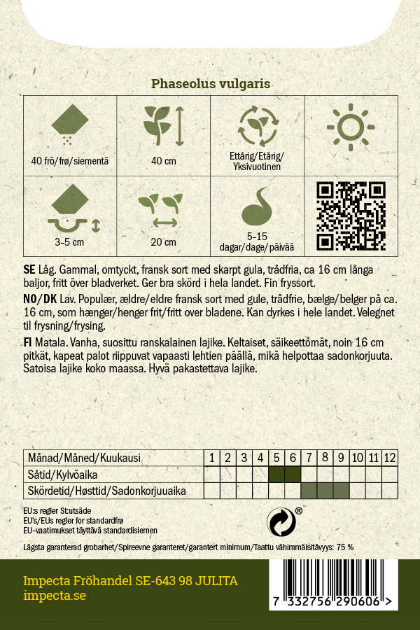 Phaseolus vulgaris 'Blue Lake'siemenmäärä 45-50