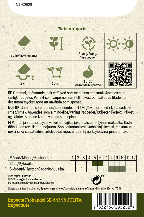 Vanha, jännittävä, täysin valkoinen lajike, joka maistuu erityisen makealta. Käytetään kuten tavallista punajuurta. Sopii erinomaisesti varhaislajikkeeksi, raakaravinnoksi sekä salaatteihin. Lehdet ovat myös erittäin hyviä käytettyinä pinaatin tavoin.