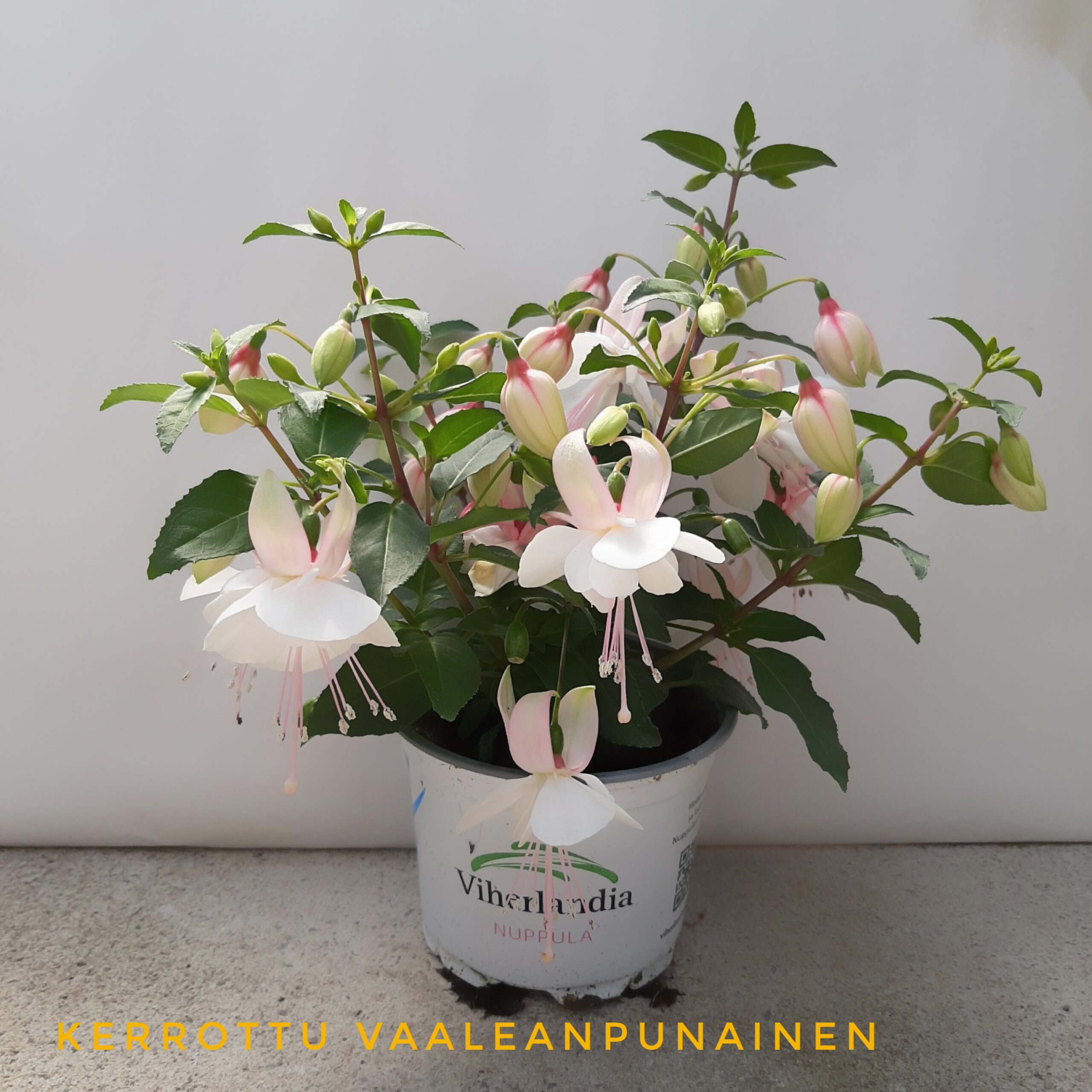 – Kukinta toukokuusta lokakuulle riippuvin pisaramaisin yksi- tai kaksivärisin kukin