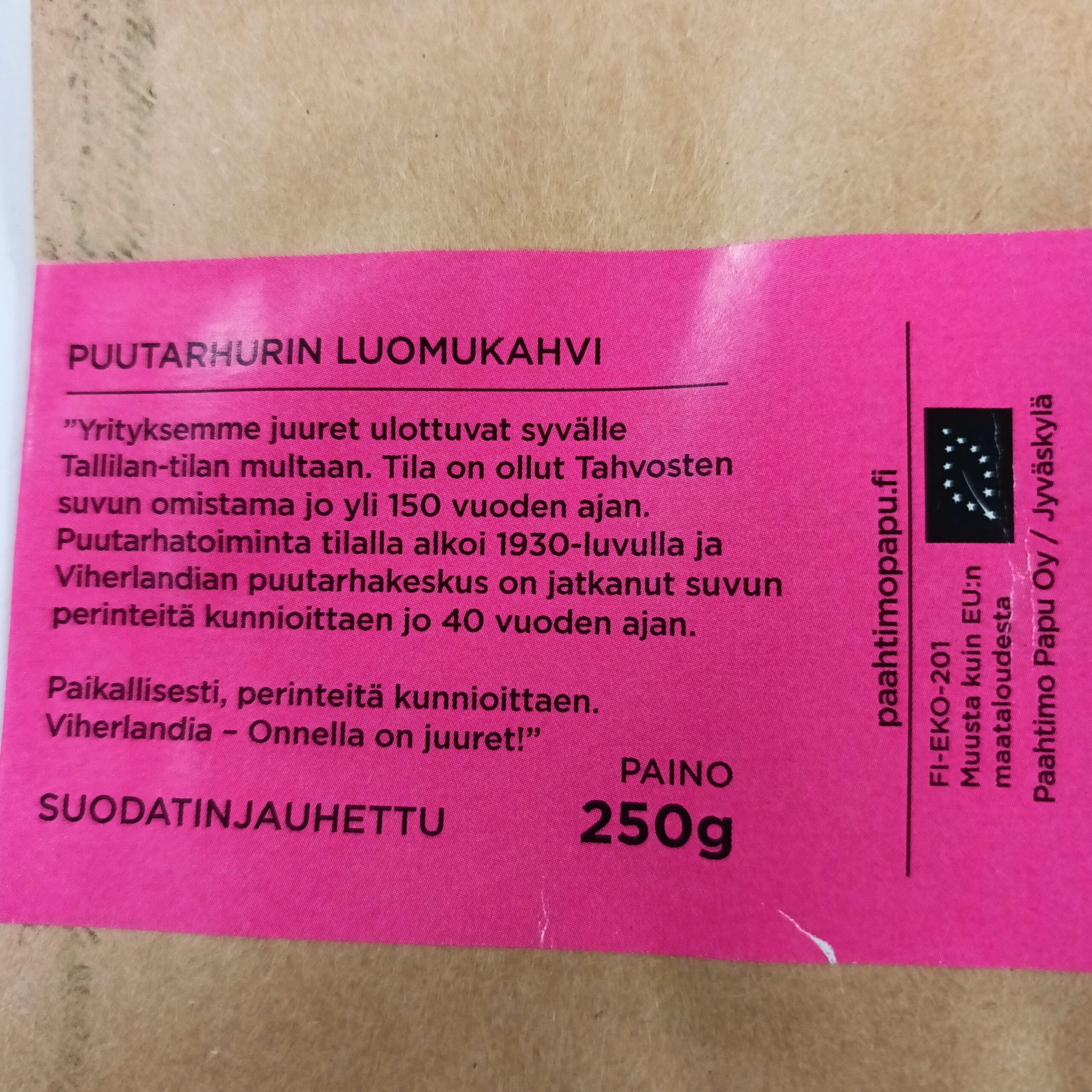 Viherlandia-kahvi on suodatinjauhettu aromikas Paahtimo Pavun paahtama luomukahvi.